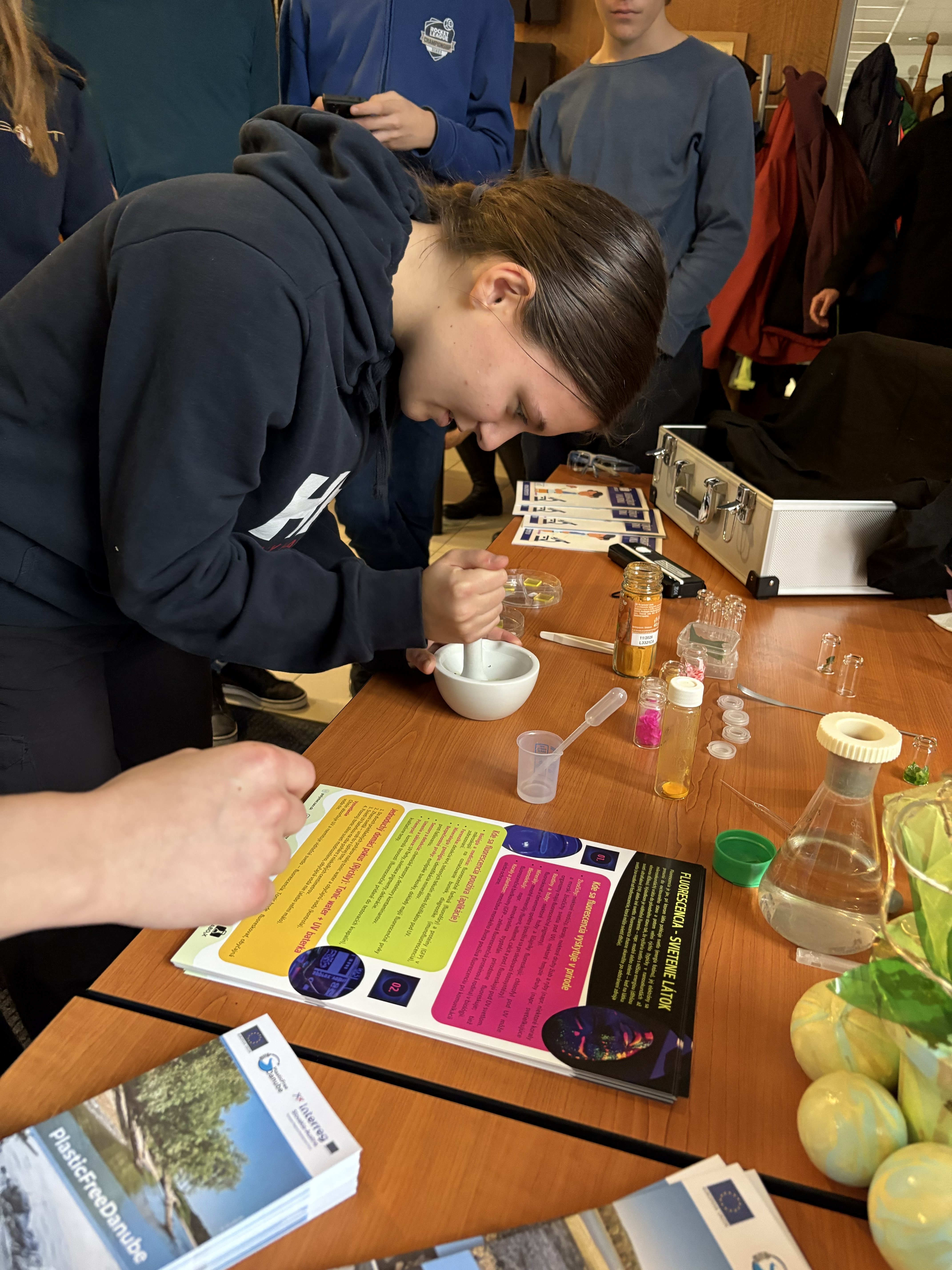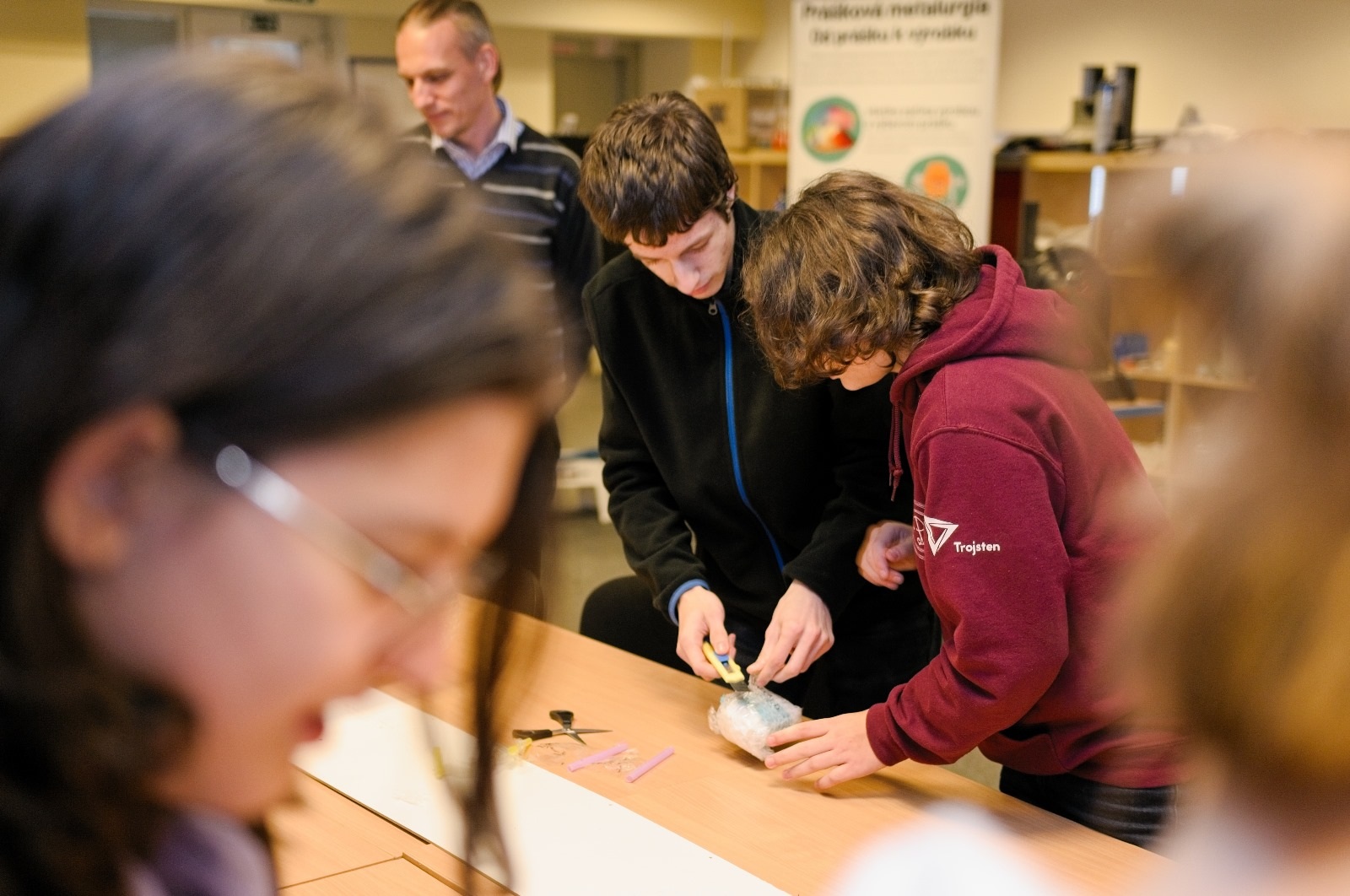 Dozvedeli sa o najnovšom výskume zváracích techník vo vesmíre a prakticky si vyskúšali navrhovanie ochranných vrstiev pre vajíčko pri páde z prvého poschodia. Exkurziu zakončili v hale, kde mohli vidieť prístroje používané na výrobu a testovanie rôznych typov materiálov.