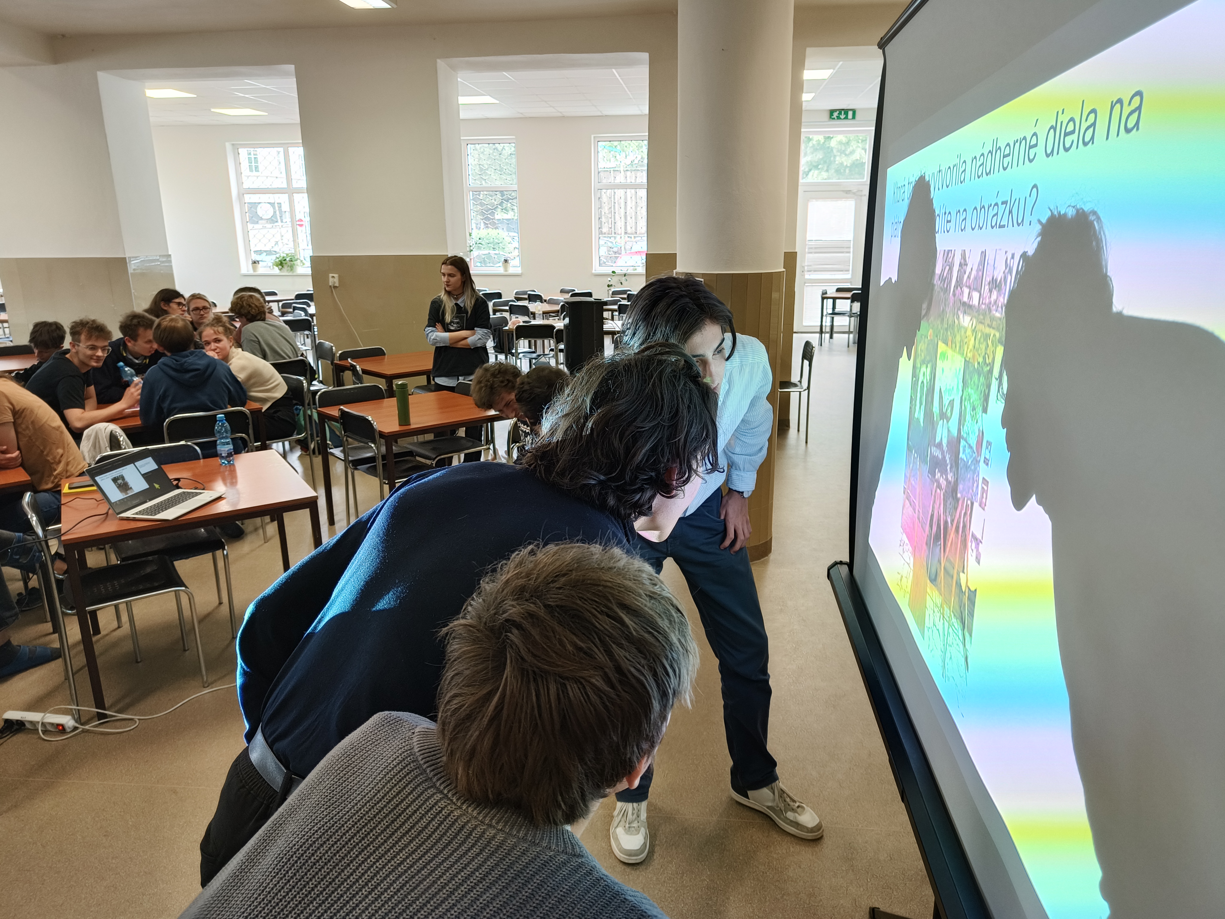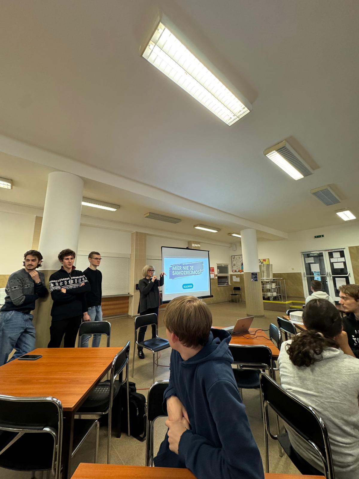 Ďalšou zaujímavou akciou v rámci celoškolského projektu MIER NIE JE SAMOZREJMOSŤ bol KVÍZ 6. mája 2025, prebiehajúci dopoludnia v školskej jedálni.