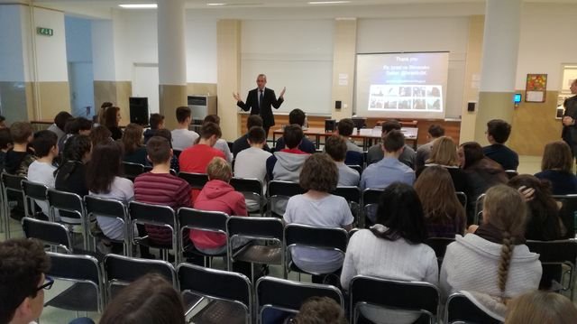 V piatok 18.11.2016 navštívil našu školu izraelský veľvyslanec – Jeho Excelencia Zvi Aviner Vapni, aby študentom Gymnázia Jura Hronca spolu s garantkou projektu, výtvarníčkou Ladou Krupkovou Křesadlovou predstavili krásy Izraela a s ním spojenú medzinárodnú súťaž Cemach. Študenti si vypočuli dve zaujímavé prezentácie a dozvedeli sa množstvo informácií o Izraeli. Izraelské veľvyslanectvo na Slovensku podporuje nespočetné množstvo podujatí a projektov, jedným z nich je aj už 5. ročník súťaže Cemach. Do súťaže je možné sa zapojiť v troch disciplínach: literárnej, umeleckej a multimediálnej.